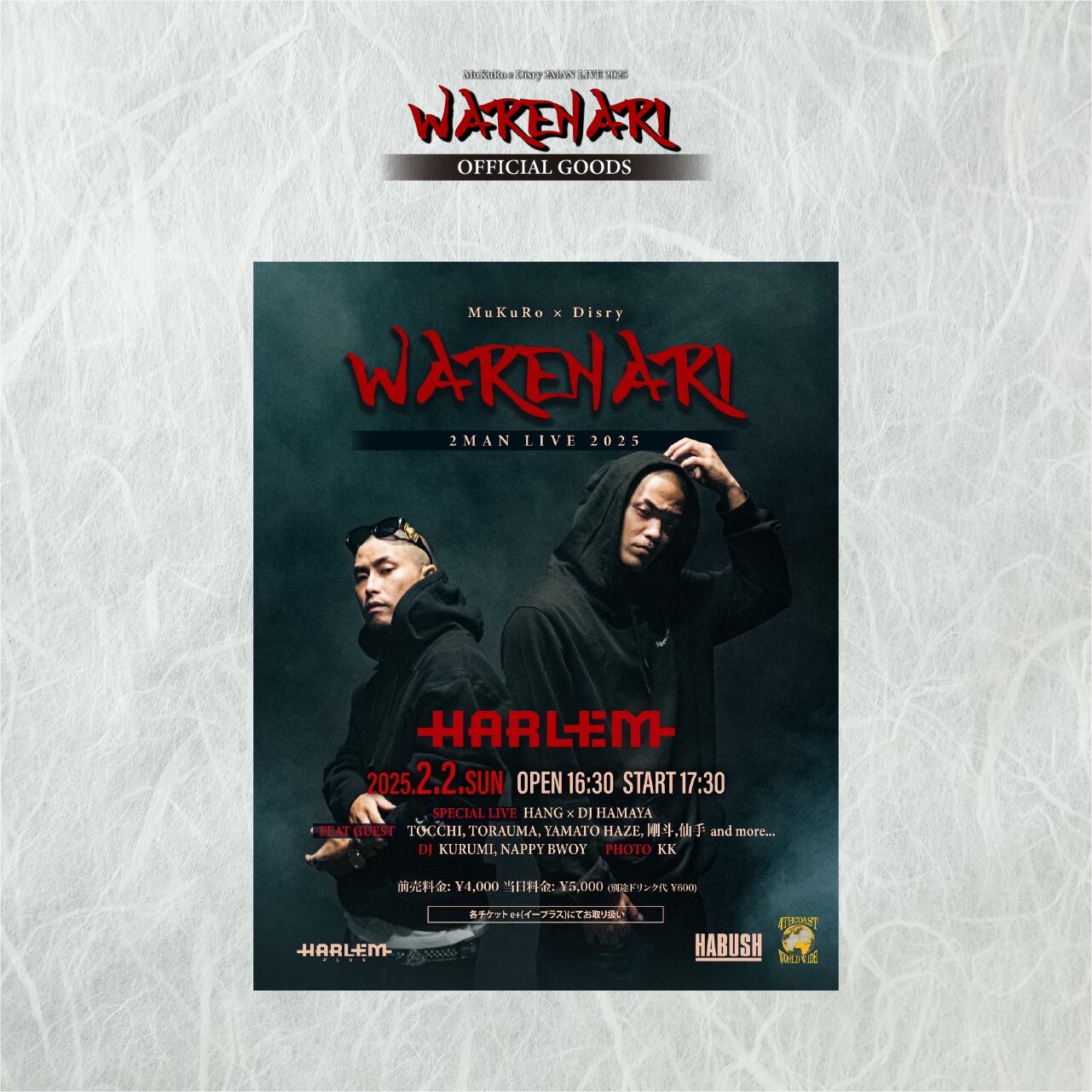 2/2に開催されたMuKuRo x Disry 「WARENARI 2MAN LIVE 渋谷公演」 B2サイズ(51cm×73cm)のポスター。 未使用品を段ボールに入れて発送します。 サイズが大きいため通常より送料がかかります。